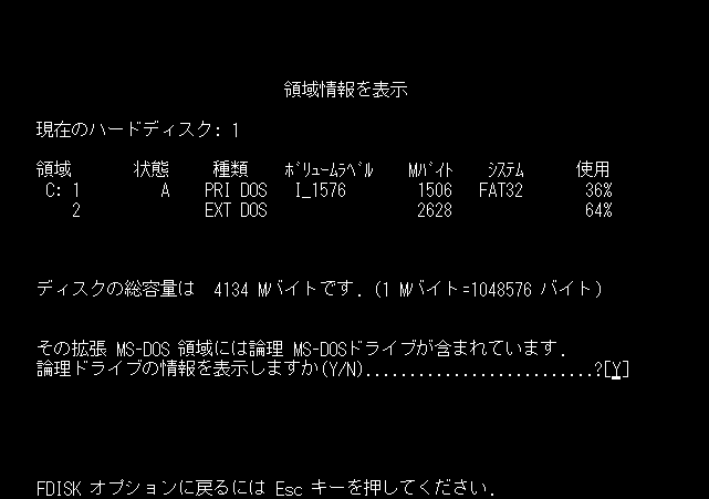 これは、拡張 MS-DOS 領域に論理 MS-DOS