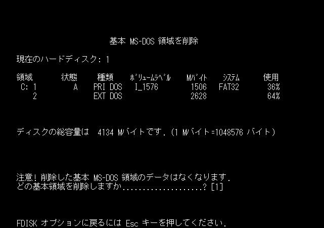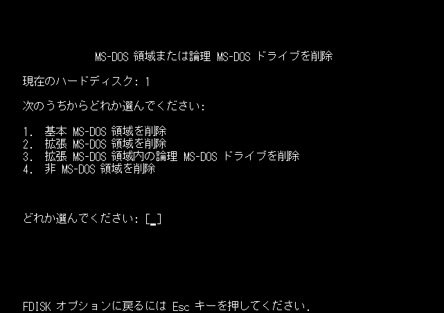 1. 基本 MS-DOS 領域を削除