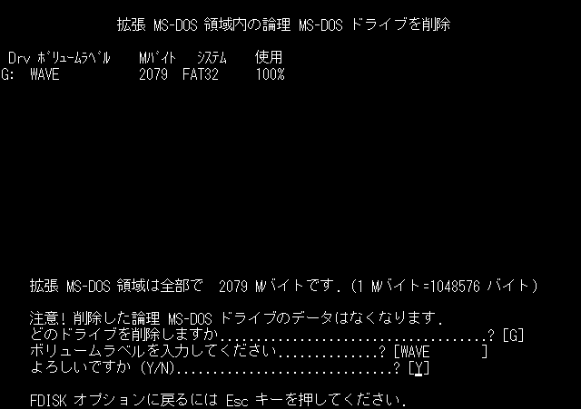 ここで、論理 MS-DOS ドライブを削除します。