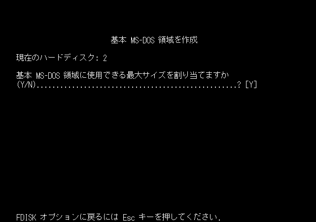 今回は、全ての容量を基本 MS-DOS 領域として確保しますので、ここでは[Y]を選択します。
