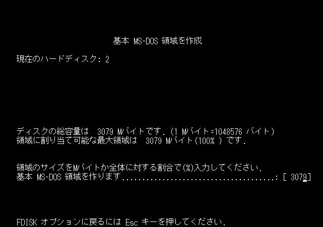 ここで、1.MS-DOS 領域または論理 MS-DOS