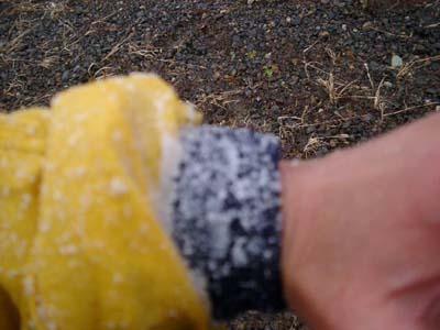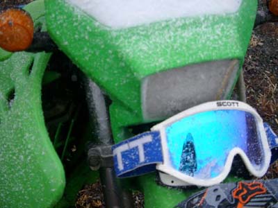 走り終わった後の雪の付着状態です。(ピンぼけ、なぜか地面にピンが合ってる) 寒かったぁ!! |