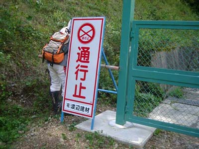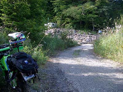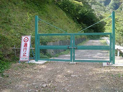 | 二口林道は、通行止め第一ゲートまでしか行けません。 春に来たときはゲート横を通り抜けられたけどそこも閉ざされていました。 どうやら、この先工事中のようです。年内にでも全線開通するのでしょうか? どうも、最近有名どころの林道にはゲートが設置されていますねぇ!! |