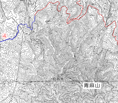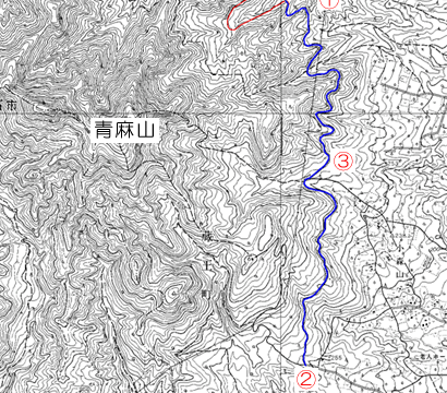 青麻山林道(赤が未舗装です。新しいところが地図上になかったので適当になっているかも)