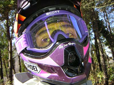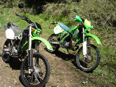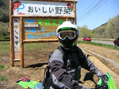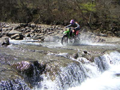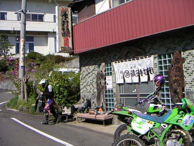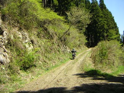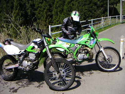 | 2004年4月29日(晴れ) KLXのY君とKDXのわたし 昨年10月25日に一人で走った道を2人で行って来ました。 秋保から川崎に抜けるトンネル越えの林道。 下りきったところで一休みです。 |