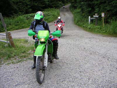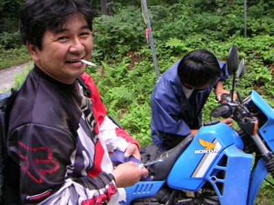 | 2004年8月14日(はれ一時くもり) 私が火を付けた訳では無いと思いますが「Oさん」が突然「XR」を買っちゃいました。 新車購入記念と銘打ての?ツーリングです。 参加者「Oさん」「Yくん」「Mさん」と私 泉ヶ岳〜鳴子までのロングランになりました。 最近、撮影はもっぱら「Yくん」に、お・ま・か・せっ!(感謝感謝) |