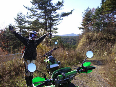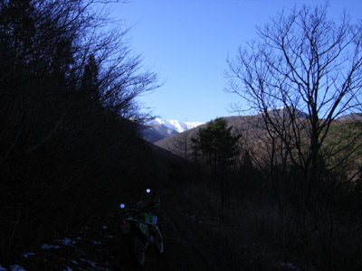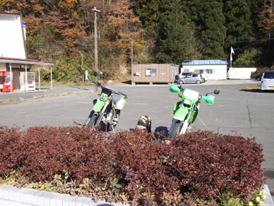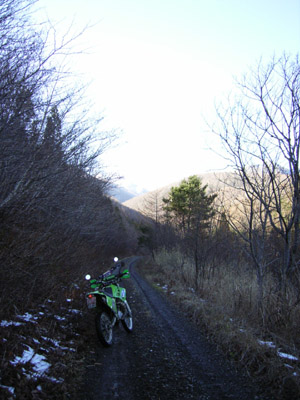 Y師匠と久しぶりの林道 師匠の近所「サイカチ沼」周辺を 最近、この沼に家電ゴミが不法投棄されている現場も見たくて 行ってきました。 確かに、テレビ・洗濯機・冷蔵庫と沼の中に投げ捨ててあました。 非道い事をしますねぇ!! 気を取り直して こちらは、坂道で(下り)ガレてます。 ![]() ちょっと下ったところからさらに下方向 ![]() 斜度はこんな感じ ![]() ちょっと下ったところからバイクを写すと ![]() ガレガレです(;;) ここを下り、また上ってくる師匠!! ![]() 私もやらされました(;;) そこをすぎて、別な道へと 行き止まりが多いので対向車を気にしないで走れます。 ![]() 師匠「よろこび」のポーズ! 遠刈田のピザ屋さんへと向かう途中 釜房湖畔から、地蔵岳方向を写す師匠 ![]() 左手の物体は気にせず・・・ ![]() 蔵王連邦はうっすらと雪化粧 ![]() うーん、天気がいいなぁ♪ ![]() 写してもらいました。 今回来たペンション&ピッツァレストランは 遠刈田からえぼしスキー場へ曲がる道のちょっと手前右に有ります。 「富夢想野」と書いて「トムソーヤ」です。 ![]() 店の外観はこんな感じで右側に駐車場が有ります。 薄生地で大きさは25cm位ですか、石窯で焼いてます。 ピリカラソーセージとベーコンを食してきました。 チーズがちょとモッチリ系で、タバスコは有りません 替わりにオリーブオイルが有りました、店長の気分でおまけが出ました。 女性が3人居た所には「やきいも」 我々には「やきニンニク」(^^; さて、食事後いつもの「神嶺林道」片道9.1Kmをピストンです。 いつもの場所で一休み。 ![]() 水は少なめ ![]() 上流方向、紅葉は終わって散ってます。 ![]() 堰堤脇に駐車中 ![]() 看板が新しく出来てました ![]() 雪山です。 スキー場オープンも、もうすぐかな? ![]() 戻り道、師匠の後を必死に着いていくと突然停車? なぜ?? ![]() この景色が写したいと「雪山」 景色なんか見てる余裕無かったし・・・ ![]() 道の脇には以前降った雪が残ってました。 ![]() なにをしてるのでしょう??? ここを見ればわかります ![]() 松川沿いからの蔵王連邦雪模様 |