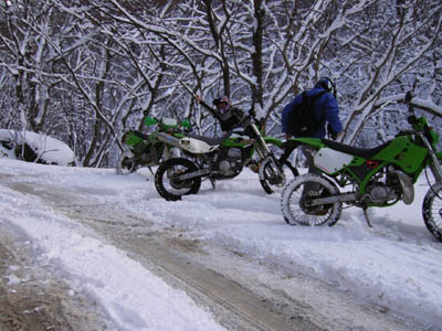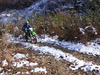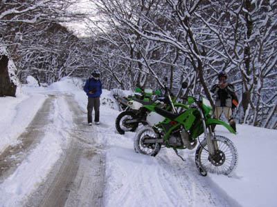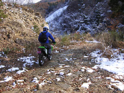 BBSに46から「ラストなんですか?? 」と書き込み有ったので 先週、Y師匠と走った場所へ連行しました。 待ち合わせ場所の「ミニストップ」までが 非常に寒かったです。 途中の温度計が「3℃」と表示されてました。 本日は、ガレた坂を下から上ることにしました。 とりあえず上りまして、再度下って上るという事に・・・ が 前夜に雪が降って積もってるし・・・ 下る直前のあっしと46 ![]() あっしの登り ![]() この前にY師匠が下りて上ってきましたが写真は無しです(^^; 師匠のカメラ電池が入ってなかったし 46が下りて行きます ![]() さらに下りて行きます ![]() 上ってくる46 ![]() 上って行く46!! この後、振られてましたが登り切る。 ![]() サイカチ沼を後にして、ここに来ました。 茂庭台へと抜ける道ですが、ワイヤーで通行止め。 ![]() 横から入りましたが(自己責任でね) 分岐を間違って行き止まり。 戻ってきました。 昼飯を食べに二口方面へ ![]() 大滝レストハウスです。 ここまでは、道路の雪はほとんど溶けてました。 で、二口峠へと向かいました。 結局、磐司岩の看板を過ぎた所で圧雪になり 「ツールツル」状態のため折り返しました。 ![]() 磐司岩 ![]() 数台の車が下りてきましたが我々を見て ??? と不思議な顔(・_・)で通り過ぎて行きました。 ![]() 下りは、もっと怖かったですねぇ 師匠が転けてブレーキレバーを折っちゃいました。 結局、昼飯は秋保の町まで戻ってから 「○タコ」という店で・・・ ここがまた安いんですよ〜 かけそば・うどんが¥280 セットメニューも豊富で 天丼・カツ丼・上カツ丼・あなご天丼・親子丼等々に かけそばかうどんのセットで高くても¥800だったかな? ミニも有ってそば・うどんが小どんぶりで、若干安いです。 お味もまぁまぁでした。 寒い体にはあったかいそばと丼物!! 師匠、転倒後お体大丈夫でしたか? 今回も普通の林道を走れなくて残念がってた46 両名ともお疲れ様でした。 |