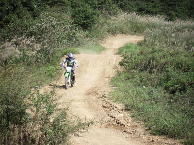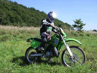 | 2006年9月21日(木)晴れ 前日のこと 会社で昼休みに天気予報を見てたら 「明日は晴れるでしょう。」 って、今日も晴れてるけど そう言えば、休日出勤の振り替え休みが明日じゃないですかぁ!! ちょっと考え込む とりあえず、バイクのパーツ交換かなぁ〜と さて、お休みの日の朝 おーーー! 晴れ! パーツ交換11時頃に終了 「走りたい!!でも林道に一人では行きたくない!!」 ちょうど、息子も休みでバイトは夕方から カメラマンを頼む (^o^)丿 一緒に引き連れて「MASH」へと向かいました。 |